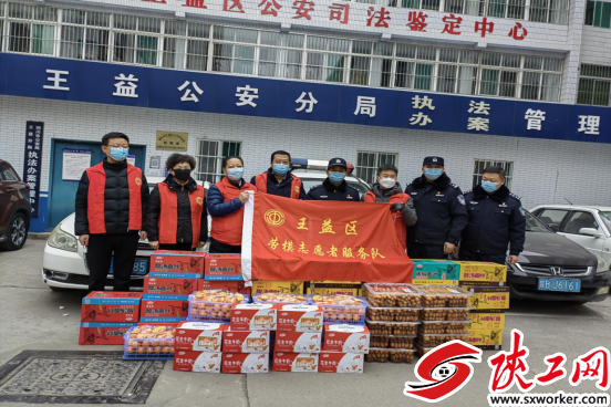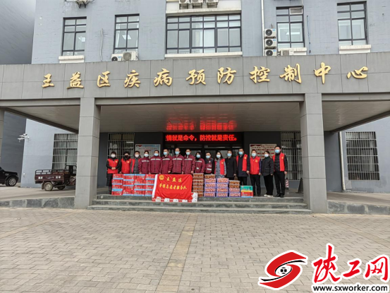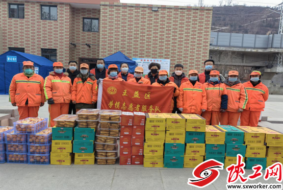 陕工网讯 一个劳模一面旗帜,一份坚守一份力量,疫情防控的关键时期,他们以实际行动诠释劳模精神。12月31日,铜川市王益区总工会协同王益区劳模志愿服务队队员,市级劳模、铜川市吉富商贸有限责任公司董事长胡玉芬,市级劳模、铜川天天放心食品股份有限公司董事长卢凤君,市级劳模、铜川市王益法律服务所主任孙峰,市级劳模、铜川市益民利农实业股份有限公司董事长刘铜利,区级劳模、陕西火凤凰艺术陶瓷有限责任公司副董事长江波前往王益区环境卫生服务所、王益公安分局、合凤高速王益经开区出口、王益疾控中心、黄堡卫生院核算检测点、安村疫情防控值守点慰问连日来奋战在疫情防控一线的工作人员,捐赠方便面180箱、牛奶60箱、面包60箱、橘子60箱。