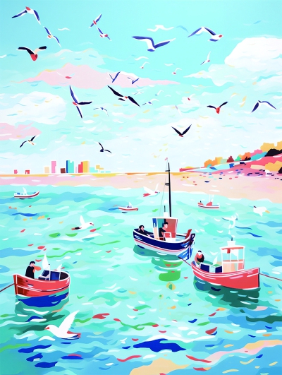 如果说连云港的海带着长者的温柔,那么青岛的海就充满年轻的活力。我们是晚上到的青岛,一出站就感觉空气中的咸腥气和潮湿气比连云港更胜,海风倒是出奇的凉爽。早起先去了栈桥,沿途都是售卖啤酒原浆的,栈桥上人山人海,海上更是热闹非凡,出海的游艇一艘接着一艘,翻涌的浪花叫嚷着吸引注意。下午去鲁迅公园,海水湛蓝似镜,岸边礁石林立,姿态各异。我站在礁石上,听着海水有节奏地拍打又急速落下,远远眺望,白色的帆船在缓慢航行,蓝色的海面上奏响了华丽乐章。傍晚时分,我们来到了胶州湾,登上了环游大海的轮渡,海鸥三三两两掠过,金色的余晖下橘色闪烁,深沉的蓝与温柔的橙交相辉映,衬得我们举杯的青岛啤酒更具活力。