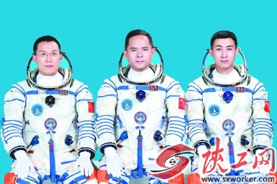 这是神舟二十一号航天员张陆(中)、武飞(右)、张洪章。