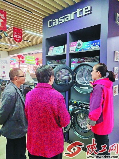 10月13日,顾客在西安一家电器门店挑选洗烘套装产品。