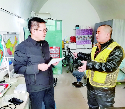 刘波(左)走访了解外卖员家庭情况。