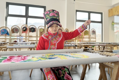 订单来了,收入稳了,挥挥手,与“面朝黄土背朝天”的过去告别,舒艳玲带着家人进城,奔向美好幸福生活。经过多年努力,她成长为公司的高级绣娘兼羌绣样品工艺师,除负责产品新订单的先行先试工作外,还担负制定工艺标准、设计制作流程的重任。