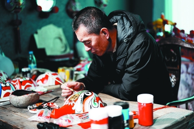 薛亚兵绘制脸谱。
