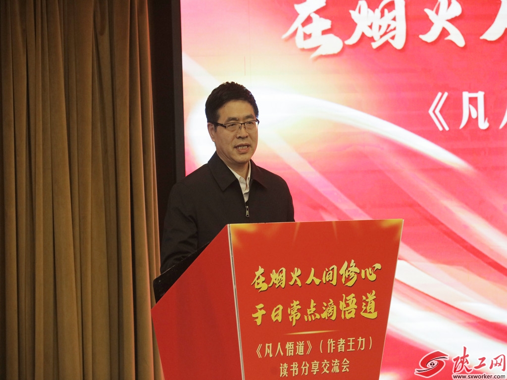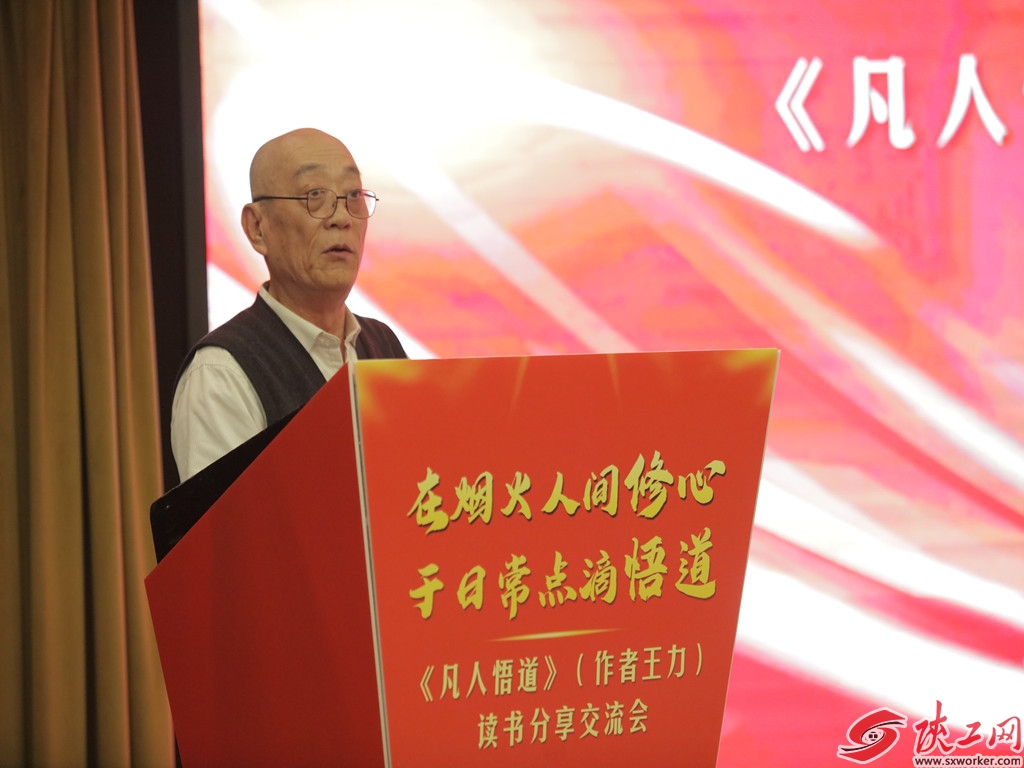 活动伊始,兰新哲首先介绍了陕西省劳模工匠协会的基本情况,他代表陕西省劳模工匠协会重点谈了主办这次读书分享会的背景,这是创新开展陕西省劳模工匠大讲堂品牌活动的有益尝试。他指出《凡人悟道》作者王力先生,担任过大型国有企业的高管和工会主席,具有传奇的人生阅历,所以这次《凡人悟道》读书分享交流会必定别开生面、与众不同。同时就《凡人悟道》谈了两点感受,他指出《凡人悟道》中的“凡人”既可以是工人,也可以是所有劳动者,还可以是我们的劳模工匠。《凡人悟道》中的“道”应该是普通人熟知的大道理之外的更深层次的道理,那就是“劳动创造一切”“劳动创造未来!”