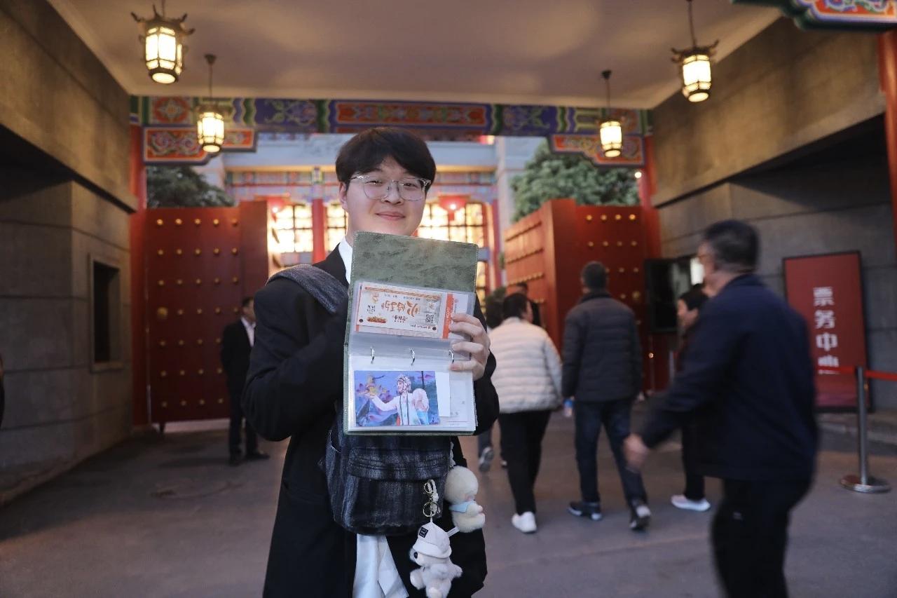 剧场外,年轻戏迷展示自己对三意社秦腔资料的收集本。