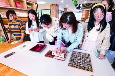 互动环节中,以“长、安、山、河”为令词的唐诗飞花令火热开展,职工现场踊跃作答。活动还设置活字印刷、雕版印刷非遗体验区,大家现场印制唐诗作品,沉浸式感受传统印刷技艺的匠心与魅力。