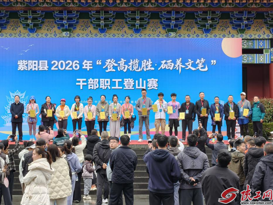 陕工网讯 (王艳)2月28日,由中共紫阳县委宣传部、紫阳县总工会、紫阳县文化和旅游广电局、紫阳县教育体育局联合主办,多部门协办的紫阳县2026年“登高揽胜·硒养文笔”干部职工登山赛在紫阳港