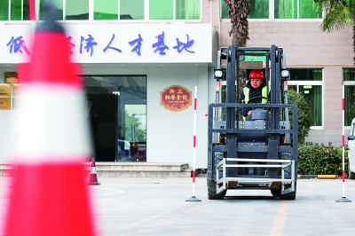 职工进行叉车技能培训。