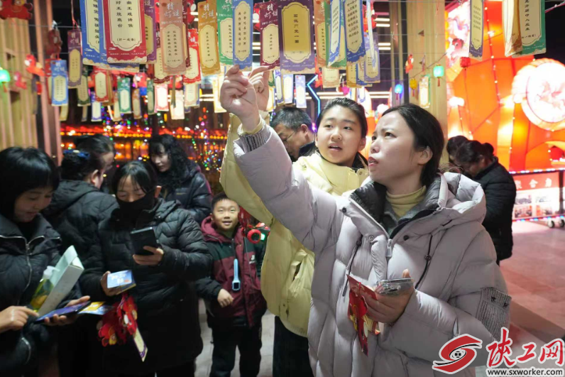 夜幕降临,公司领导出席文家坡矿元宵节活动。活动在舞龙舞狮中启动,无人机表演《一马当先》点亮夜空,光影骏马与绚烂烟花交相辉映。主花灯“金龙腾飞”气势恢宏,500条灯谜前人潮涌动。围绕“赏、品、玩、悟、廉”五大主题,文艺互动、趣味竞技三大区域人气高涨:元宵邮局里,手写信笺承载温情;汉服体验馆中,罗衣飘飘古韵十足;非遗手工DIY区,职工在指尖流转间感受传统技艺精巧。