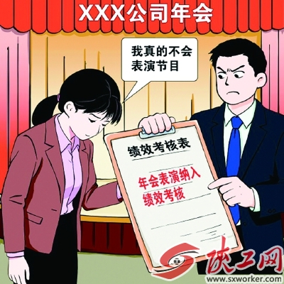 广东深圳某公司员工因拒绝在年会上表演节目,被公司以“不服从安排”为由解雇;社交平台上,有“打工人”发帖吐槽,公司年会将表演节目与绩效挂钩,让本该轻松的聚会变成“考核现场”……