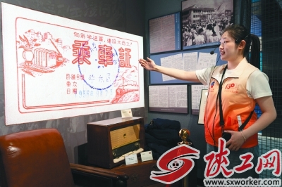 当天他正接待一支来自江苏盐城的参观团,参观者在西迁专列乘车证前驻足良久,有人凑近端详票面上的字迹,有人举起手机,记录下这组珍贵的史料。