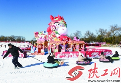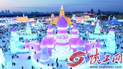 ③1月1日,游客在黑龙江哈尔滨冰雪大世界园区内游玩。