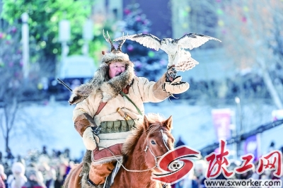 ②2025年12月21日拍摄的内蒙古呼伦贝尔冰雪那达慕开幕式上的民俗表演。