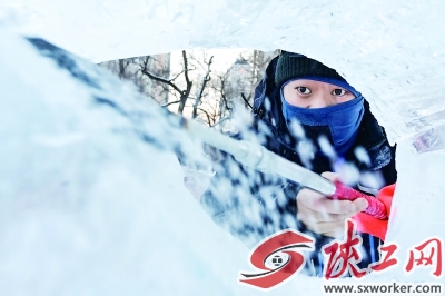 ④1月2日,冰雕师在黑龙江哈尔滨冰灯艺术游园会园区内进行冰雕创作。