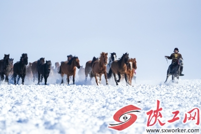 1月3日在新疆昭苏湿地公园拍摄的“天马踏雪”表演。