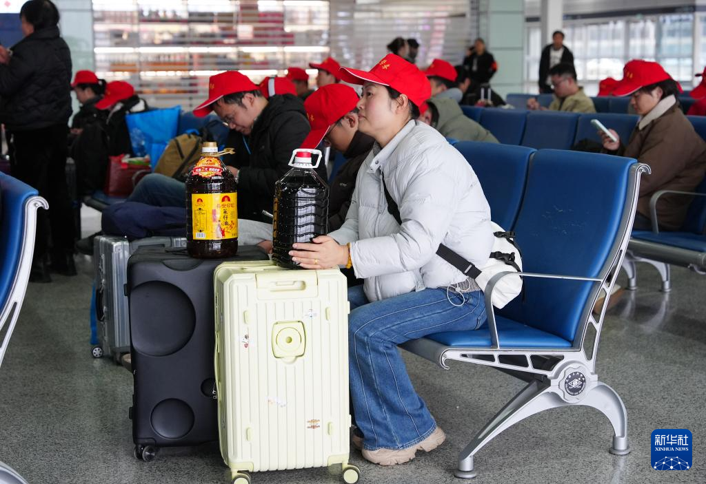 2月24日,来自西安市周至县的务工人员在西安北站候车。新华社记者 邵瑞 摄