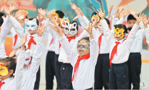 ③3月2日,在广西南宁市滨湖路小学,孩子们在开学典礼上进行情景表演。