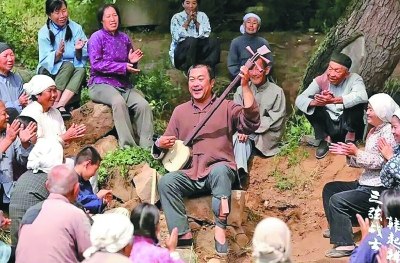 命运的磨难接踵而至。正当韩起祥学艺初成时,师傅遭杀害,母亲也已离世,孤苦无依的他只能与师傅的女儿苏兰英相依为命、颠沛流离。兄妹二人靠三弦技艺勉强糊口,却难抵现实的残酷,韩起祥只得忍痛将苏兰英托付他人,独自拄着拐杖、背着三弦“走南路”——那条旧社会从榆林到延安的逃荒之路。难以想象,一个盲人在黄土高原的沟沟岔岔间踽踽独行,是怎样的信念支撑他走过黑暗?或许正如刘志丹对他所说:“你的三弦也是一杆枪,照样能打击敌人。”这把三弦早已成为他与灵魂对话的伙伴,既倾诉着对生存的渴望,也承载着对理想的向往,即便在最艰难的时刻,也未曾让他放弃前行。