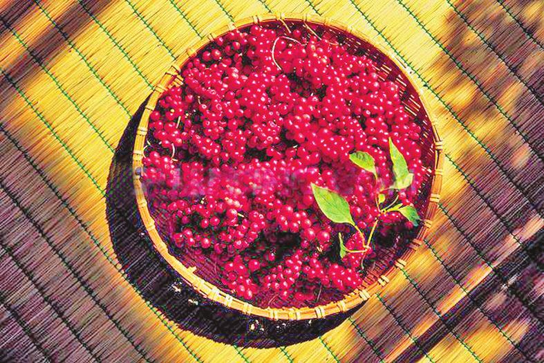 五味子果通体鲜红,果粒颗颗圆润饱满。它们或整齐、或散乱地排列着,满载山野的灵气,犹如颗颗红宝石团簇在一起让人眼前发亮。我小心翼翼摘下一颗含入嘴中,那种特殊的味道让人神清气爽。我吃完一粒,再摘一粒,慢慢享受着这独特的味觉盛宴,生怕它早点结束了。幸福的时光被我刻意慢慢拉长,逐渐沉淀在我的生命里,成为我人生一段难忘的记忆。