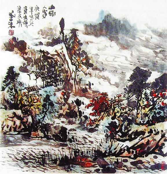 山雨人家(国画) 刘沫