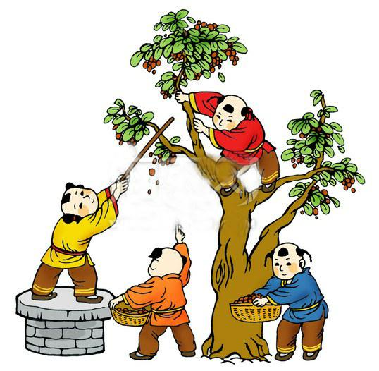打枣,是农村里对收获枣子的形象叫法:枣子采摘不能一个一个摘,而是用竹棍敲击那长满枣的树枝,让成熟的枣子都骨碌碌地落下来。打枣的时间大约在农历八月