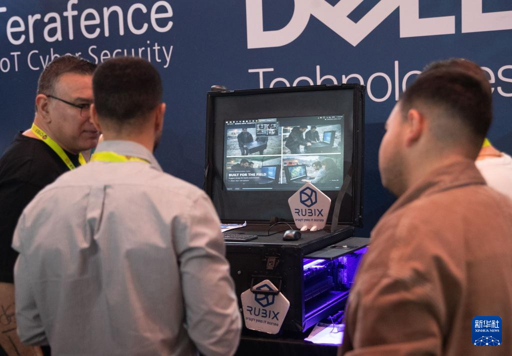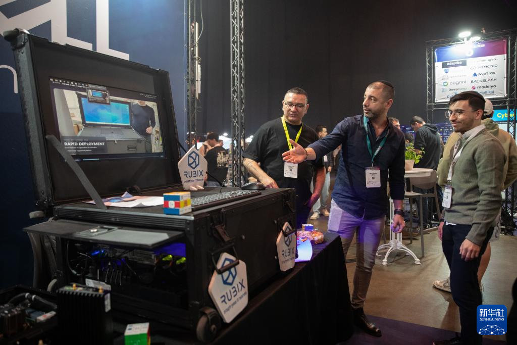 1月28日,在以色列“特拉维夫火花创新峰会”上,一名展商介绍一款人工智能环境下的网络安全传输设备。