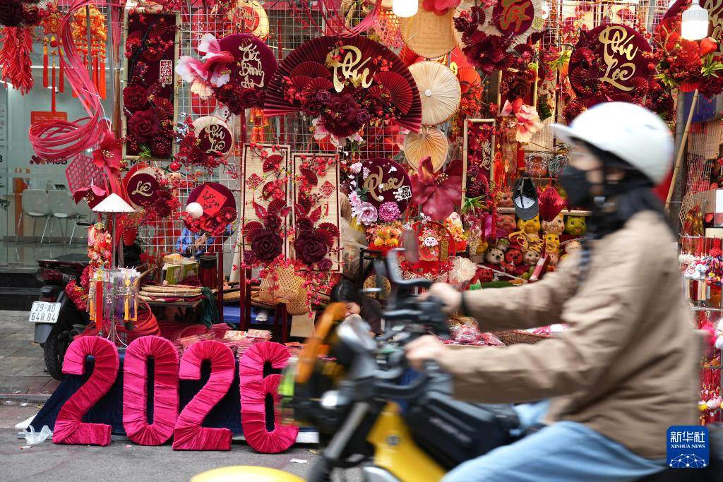 春节将至,越南首都河内年味十足。市民与游客逛古城、购年货,前往文庙、还剑湖等地拍照打卡。许多人还来到文庙的新春书法节现场,求取汉字书法作品,迎接即将到来的马年新春。