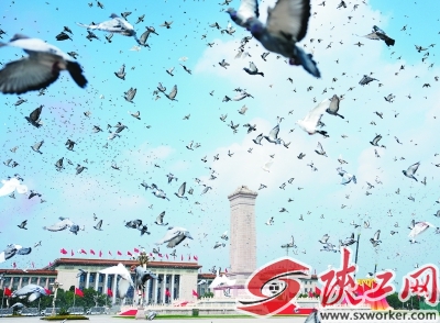 2025年9月3日,纪念中国人民抗日战争暨世界反法西斯战争胜利80周年大会在北京隆重举行。这是纪念大会现场放飞鸽子。