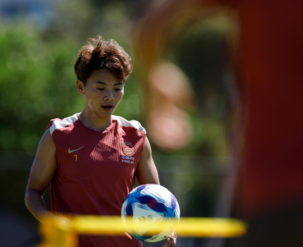 ↑2月26日,中国女足队员王霜在训练中。新华社记者 马平 摄