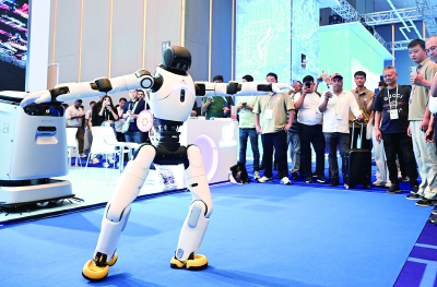 这是在第138届广交会服务机器人专区拍摄的人形机器人表演(2025年10月15日摄)。