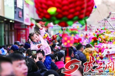 新华社记者 2月17日,一名小朋友和家人在南京夫子庙灯市游览。 新华社记者 李博 摄 15米高的灯组“赤焰神骏耀金陵”灵动飘逸,近千盏花灯组成的“祈福树”复刻“东风夜放花千