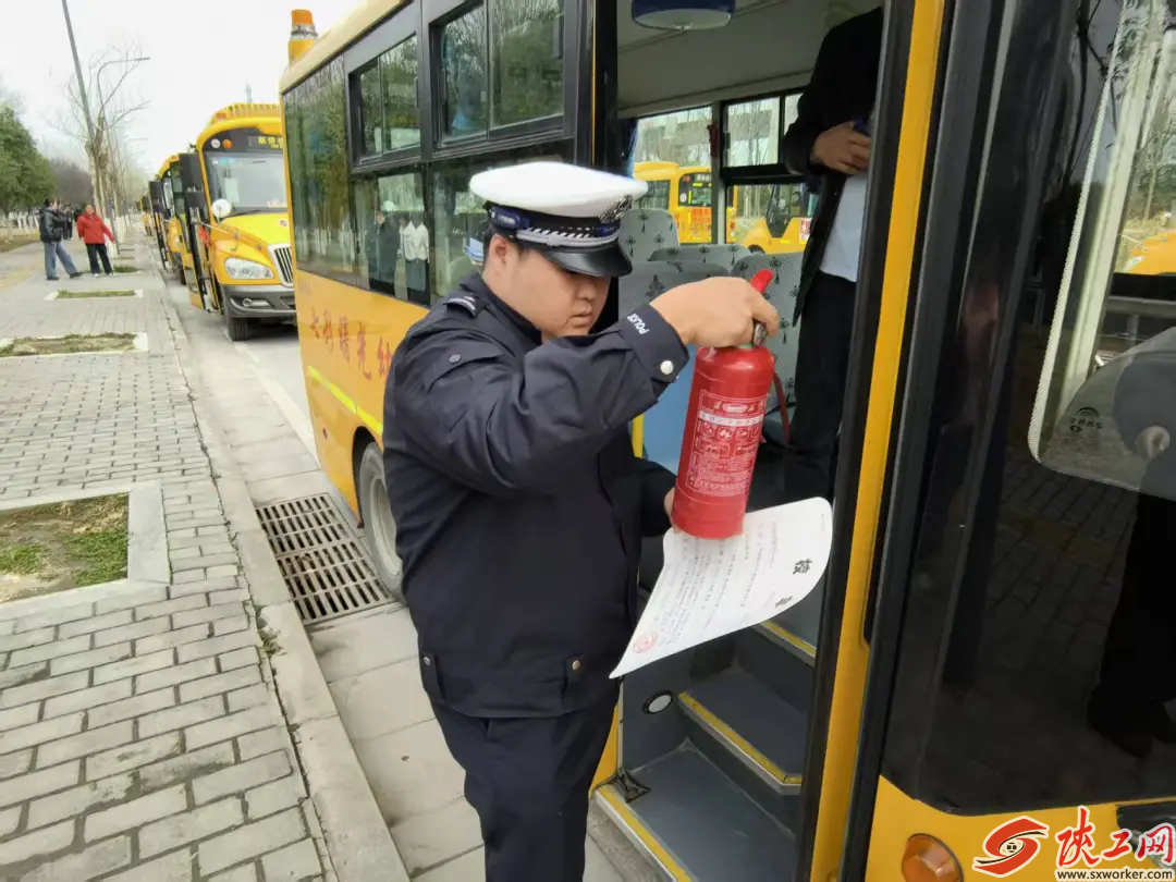 民警对校车进行检查。