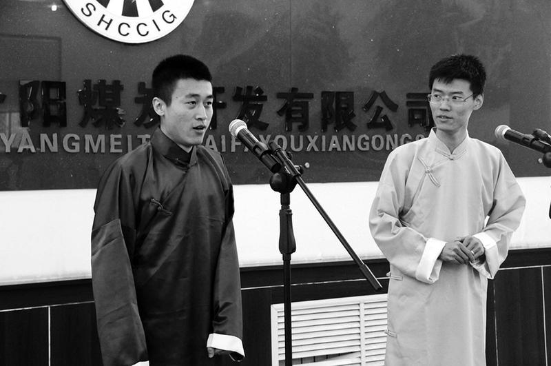 发布日期:2014-09-30 9月24日,在澄合矿业公司,青年职工王争和苟晓伟用诙谐幽默的相声形式,与到场观众共享“与困难面对面”的故事。这是澄合矿