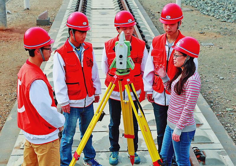 作为陕铁院工程测量技术专业的带头人,张福荣带领她的年轻教师团队近年来在测绘工程教学方面创新发展,探索出一条特别适合快速提升职业技术院校大学生动手能力的教学新路子。她主导的《高职铁道工程技术专业测量课程教学改革与实践》荣获陕西省高等教育教学成果一等奖她主讲的《线桥隧施工测量》被评为省级精品课。她率领学生两次代表陕西省参加全国职业院校技能大赛测绘测量竞赛,连续捧回了四个单项一等奖。目前,还负责并参与国家级高速铁道技术、工程测量技术专业教学资源库建设等工作。由于业绩突出,她先后获得“全国优秀教师”、陕西省“五一巾帼标兵”等荣誉称号。图为张福荣教授正在实训基地指导学生测绘实习。
