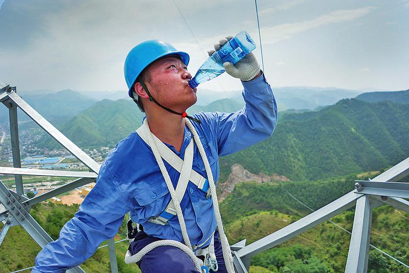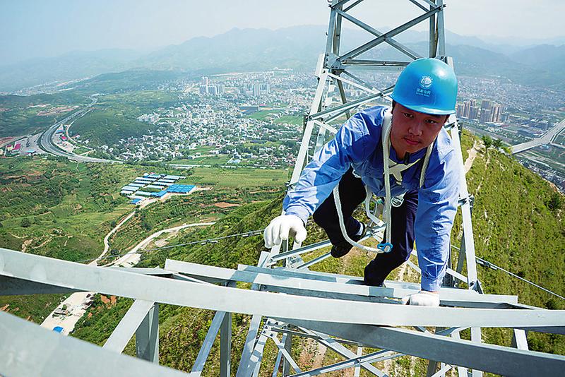 他们整日奔走在崇山峻岭之间,攀爬在铁塔上、银线间,用勤劳和勇敢“编织”着输送“光明”的电网。祝赫 摄