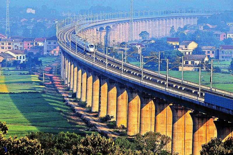 图为正在运行的由该公司承建的杭长高铁湖南醴陵特大桥。刘民主摄
