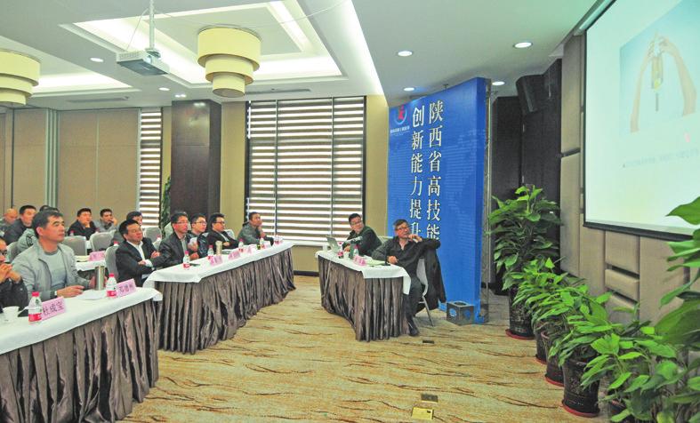 在10月13日举行的陕西省第三届职工科技节系列活动中,高分子材料成型加工和聚合物共混改性与纳米复合材料专家傅强教授对陕西省职工技术协会会员授课培训。见习记者刘强 摄