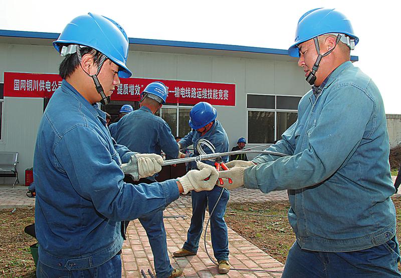 近日,铜川供电公司运维检修部输电专业在110千伏关庄变实训基地,开展了线路缺陷巡视、拉线制作、输电线路锤距目测的实际操作劳动竞赛。图为竞赛现场。王同利摄