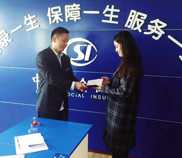 11月9日,西安市碑林区养老保险经办中心工作人员为在该中心参保的第5958户参保企业发放社会保险登记证。截至目前,该中心参保职工人数已经突破14万人。年底有望突破15万人大关。