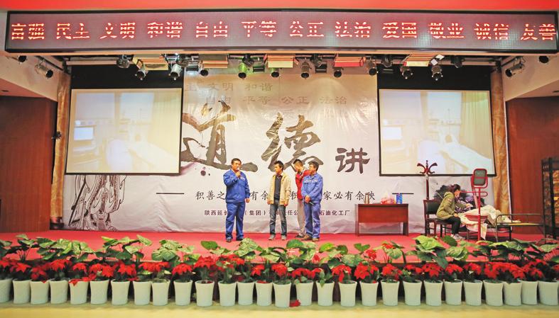 为应对新的经济形势,增强职工信心,凝聚职工力量,延安石油化工厂于11月24日举办了以“爱岗·敬业·奉献”为主题的第四期道德讲堂,该厂干部职工共计200余人参加了活动。杨建 韩丽娜 摄