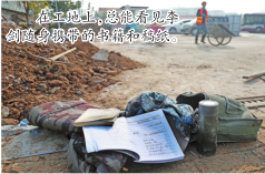 在工地上的一个半小时时间里,李剑不时抽空跑来向记者讲述他的写作经历与文学梦。谈起文学创作,他有说不完的话。
