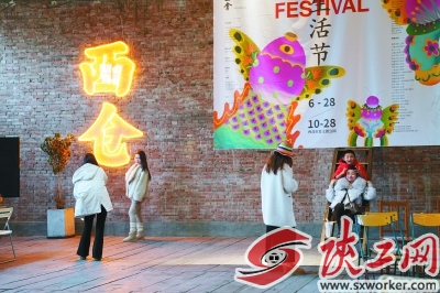 12月6日,游人在西安西仓市集文创公园一处文化空间内拍照。这座公园由位于西安市莲湖区的老西仓市集改造而来。