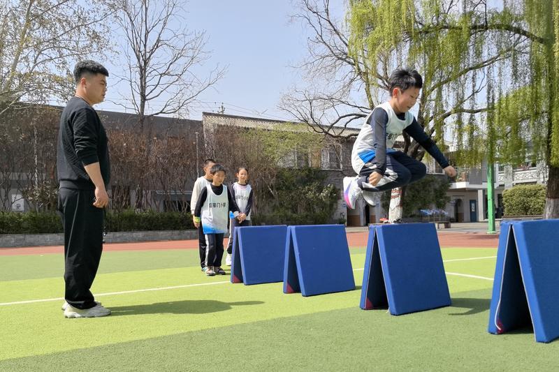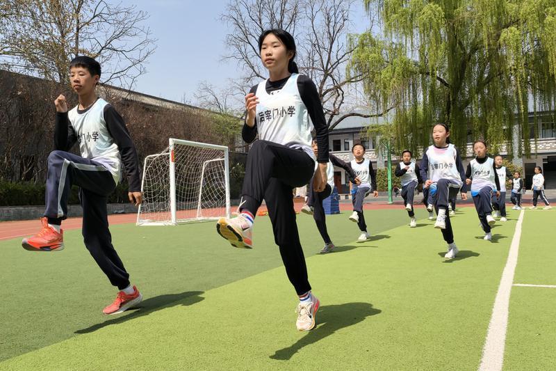 3月27日下午,暖融融的阳光洒在新城区后宰门小学的操场上。体育教师阎浩一声哨响,田径队的孩子们立刻排好整齐的队列,热身跑、拉伸、高抬腿、腹肌跳——训练在口令声中有节奏地铺展开来。