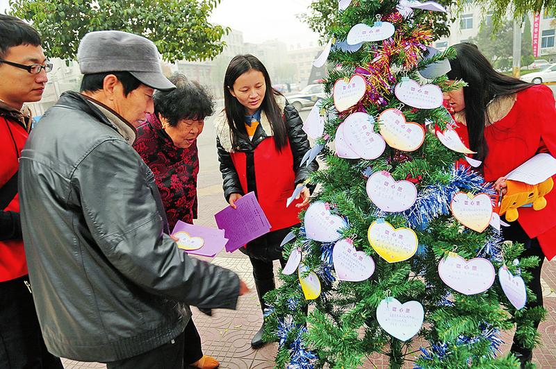 11月16日,大荔县团委在县城设立的四个“微心愿”爱心征集捐赠公益活动直通点上,市民们纷纷伸出爱心之手,在“心愿树”上摘下“微心愿”卡,并按照上面标
