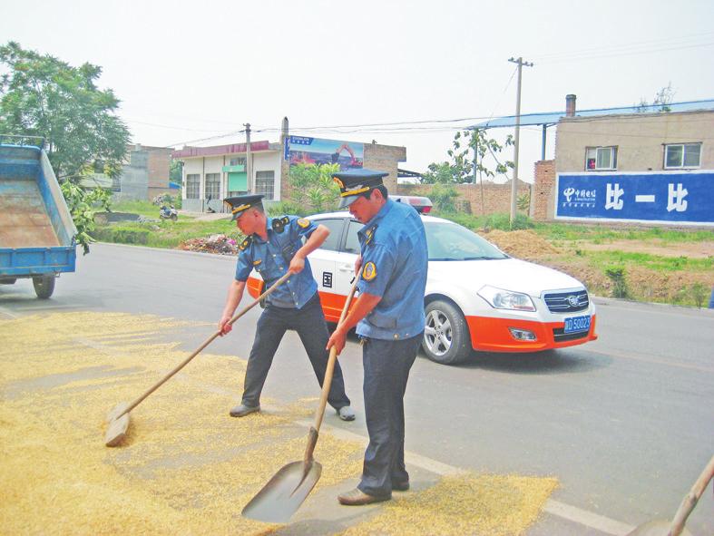 近日,三原公路段路政人员对侵害路产路权,打场晒粮的行为进行专项整治。对村庄密集晒粮较严重的路段,路政人员亲自拿扫帚帮农民清扫晒在公路上的玉米,并