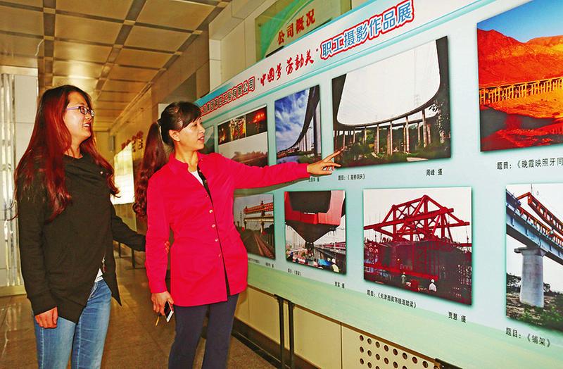 近日,中铁十二局集团第四工程有限公司工会举办了“中国梦·劳动美”职工摄影作品展,共收到来自一线40余名员工的280余幅摄影作品。 图为员工参观摄影