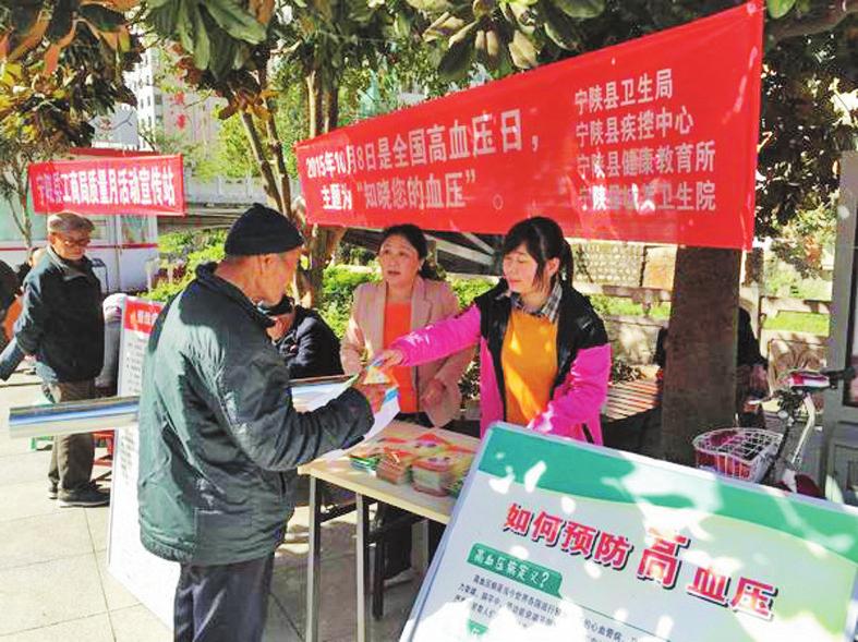 10月8日是第18个“全国高血压日”,当日,安康市宁陕县卫生局、疾控中心、健康教育所、城关卫生院组织医护人员走进该县中心广场和社区,免费为群众测量血