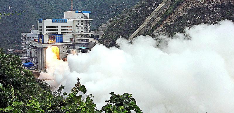 120吨液氧煤油发动机试车(图) 9月20日,我国新型三级液体运载火箭“长征六号”在太原卫星发射中心发射成功,一箭搭载20颗小卫星,开创了我国一箭多星