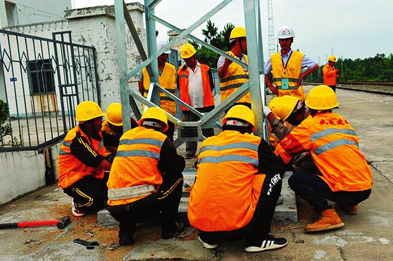 近日,中铁二十局集团电气化公司小厉项目部,严格落实安全生产责任制,做到“三不伤害”,切实保障人身安全。 图为工作人员正在施工现场做安全防护。