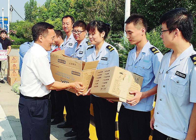 7月30日,省总工会经审委主任梁晓民等来到秦岭终南山公路隧道分公司,为一线职工送去防暑降温品,并对职工生产生活状况进行了调研。 焦彤摄